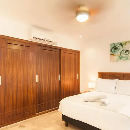 Kuxtal 3 Bedroom Downtown Apartment By Casago ferielejlighed ligger i Centro kvarter, cirka 15 minutters gang fra Playa del Carmens centrum og har en terrasse med udsigt over byen. Udstyret med et udstyret køkken med en mikrobølgeovn, et køleskab og glas, tilbyder indkvarteringen også en værdiboks, en balkon og en sofa på værelserne.